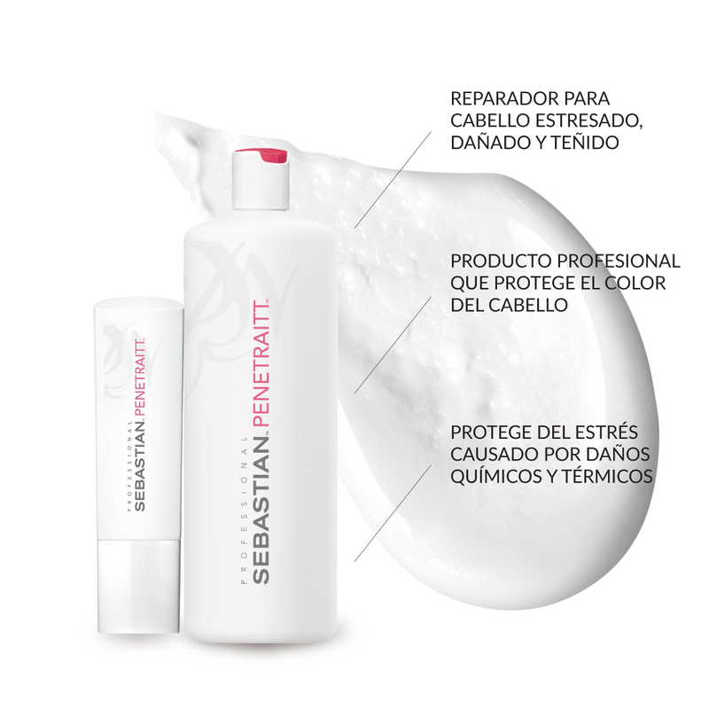 Limpia y fortalece el cabello dañado. Penetraitt Shampoo es un producto capilar de uso profesional con un sistema de rescate activo que penetra en profundidad en el cabello, contribuyendo a eliminar impurezas y a reducir la rotura. Este champú reparador fortalece el cabello debilitado frente a los daños producidos por los tratamientos químicos, el calor y los agentes ambientales. El cabello estresado queda limpio, suave y flexible. Este producto está recomendado para mejorar el brillo y la intensidad del cabello coloreado.